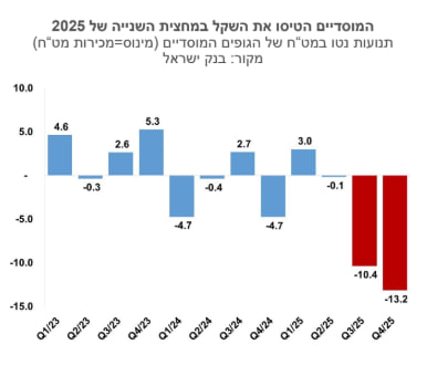 ניתן לראות איך ברבעונים השלישי ובעיקר ברביעי המוסדיים מכרו מט"ח בהיקפים חריגים שנובעת משני דברים: