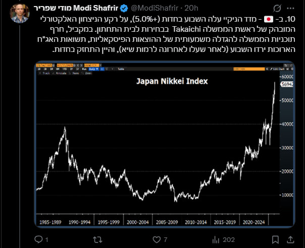 מחד אנחנו רואים בגרף של הניקיי מטה מהסקירה של מודי מבנק הפועלים שהמדד ממשיך לשבור שיאים ונצחונה של טאקאייצ'י נתן דחיפה נוספת